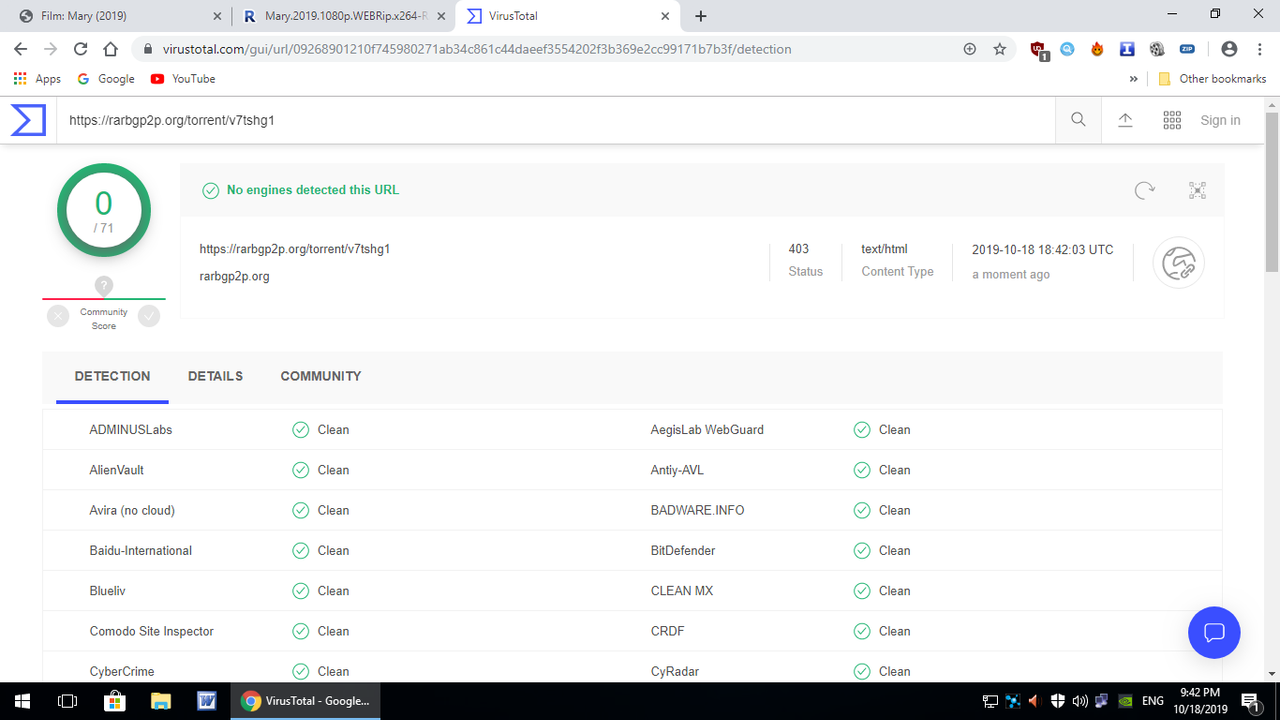 Este clar ca e vorba de un fals pozitiv. Oricum, folosesc de mult RARBG.com si nu am avut niciodata probleme.