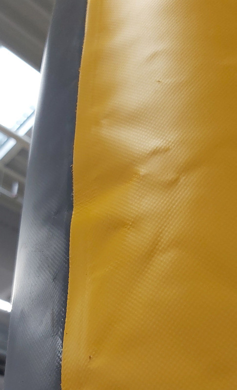 Surpriza nasoala a venit cand am ajuns la podeaua drop-stitch. Dupa dezumflare, am luat-o la bani marunti sa vad daca n-are defecte sau urme de reparatii. Ei bine, de ce m-am temut, de-aia n-am scapat. Avea ! Pe fund, avea o pata de solutie de lipit clara, iar sub solutia de lipit se vedeau 2 fisuri. Ambii angajati au confirmat ca si ei cred la fel.